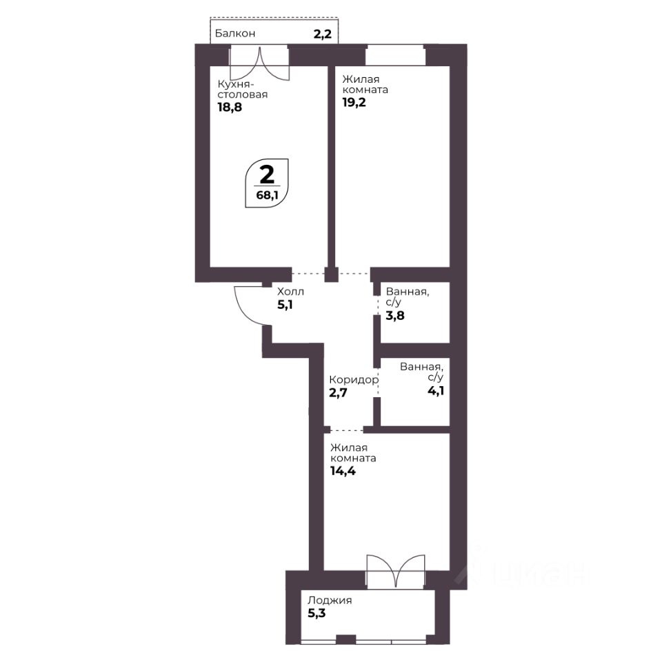 Общая площадь68,1 м2