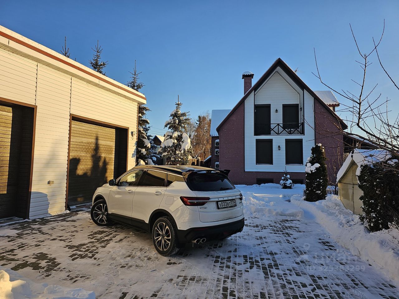 На участке: — Гараж на 2 машины + мастерская — Крытая зона барбекю с мангалом и обеденной зоной — Плодовый сад (яблони, груши и др.) — Теплица для овощей — Ландшафтный дизайн, озеленение