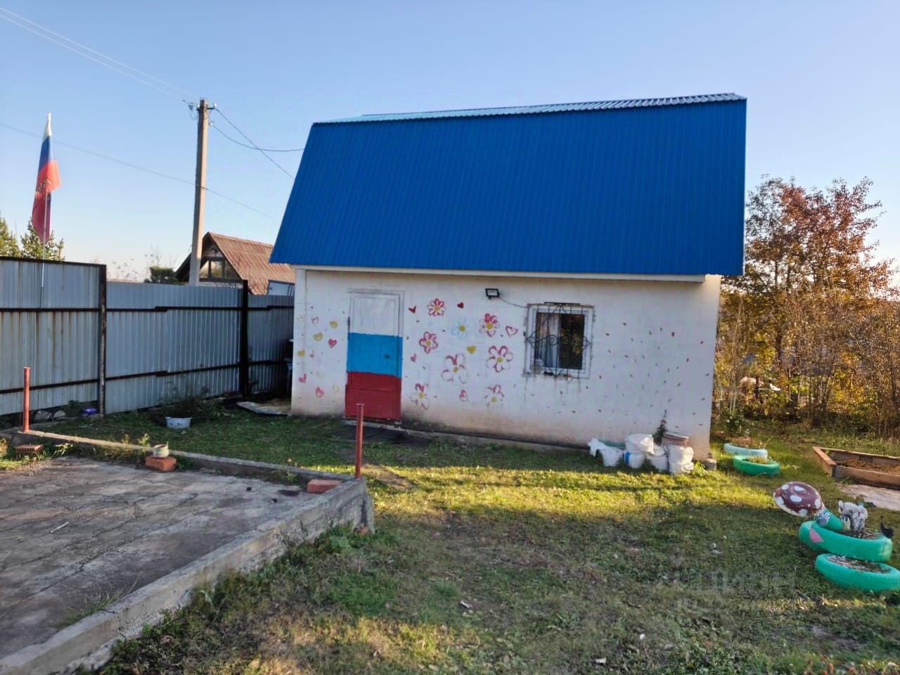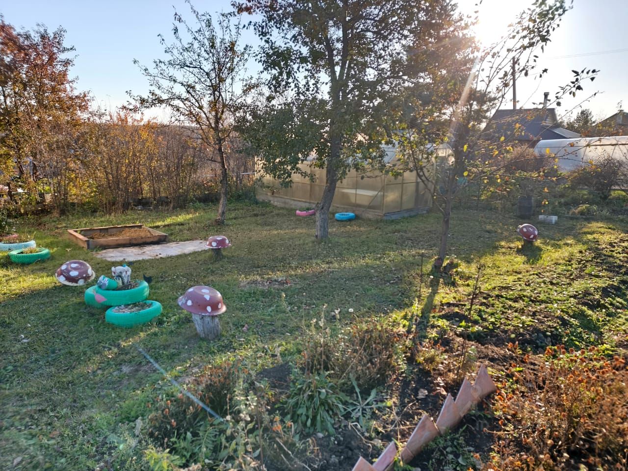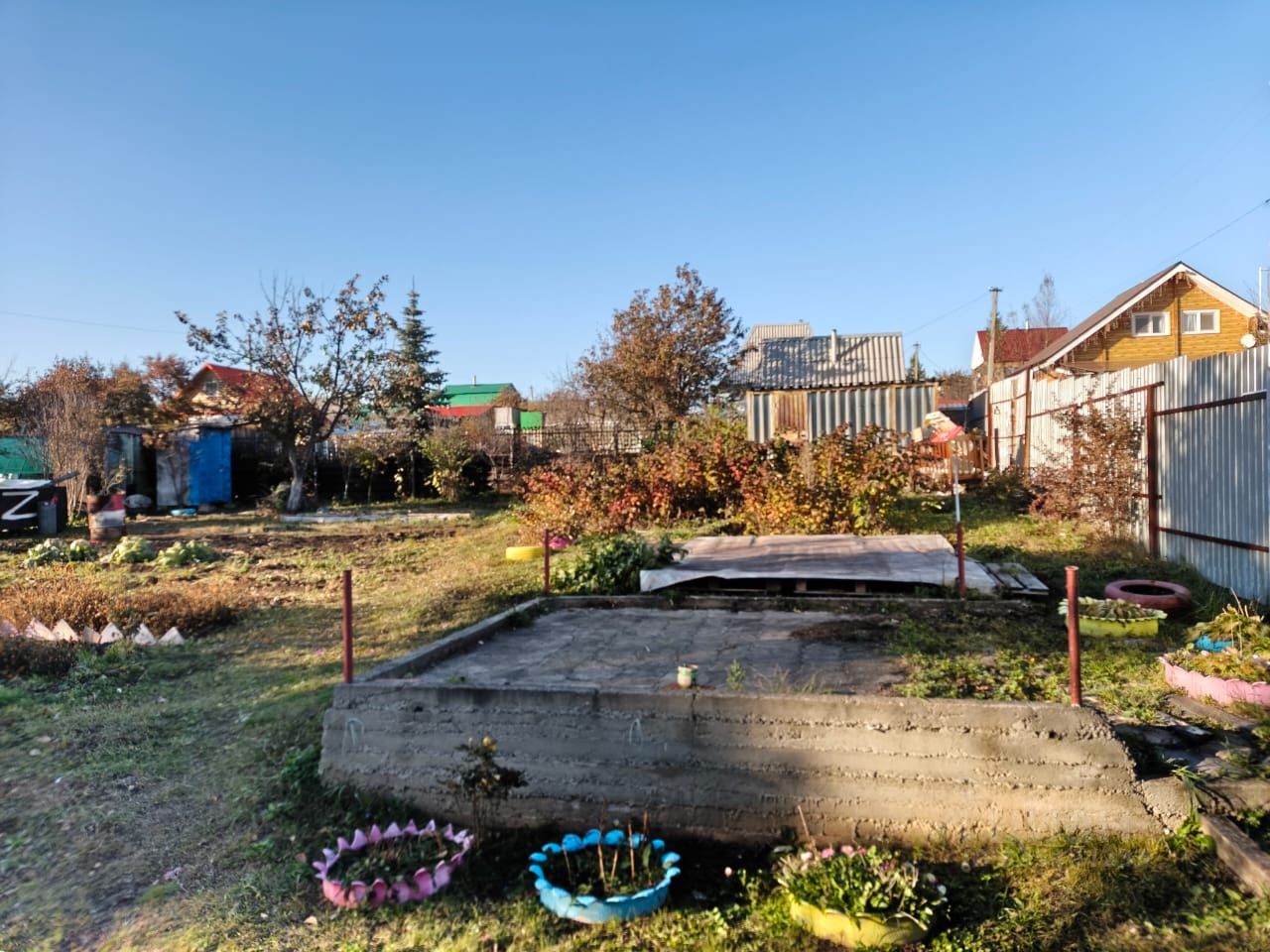 На земельном участке есть бак для воды, теплица, фундамент под баню.
