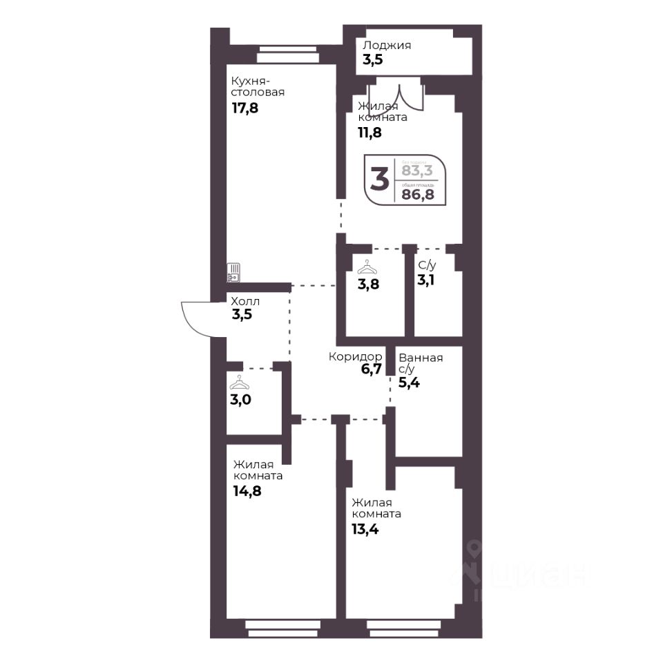 Общая площадь83,3 м2