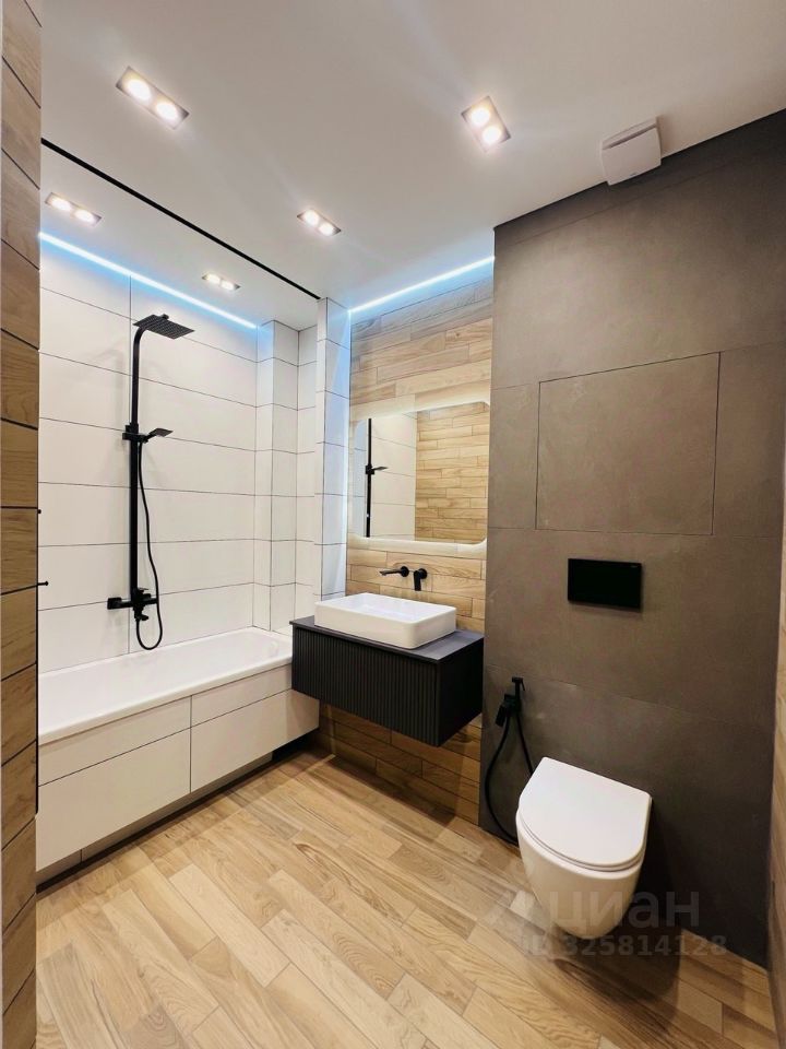 В квартире выполнен качественный евроремонт. Здесь есть всё необходимое для комфортной жизни: современная мебель, бытовая техника и продуманная планировка. Санузел совмещенный, отделан современными материалами. Окна выходят во двор, поэтому в квартире тихо и спокойно.
