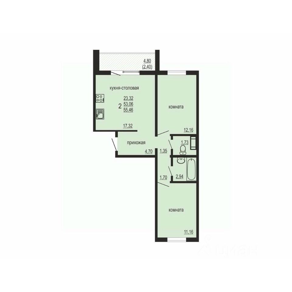 Общая площадь55,46 м2