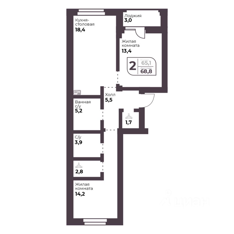 Общая площадь65,1 м2
