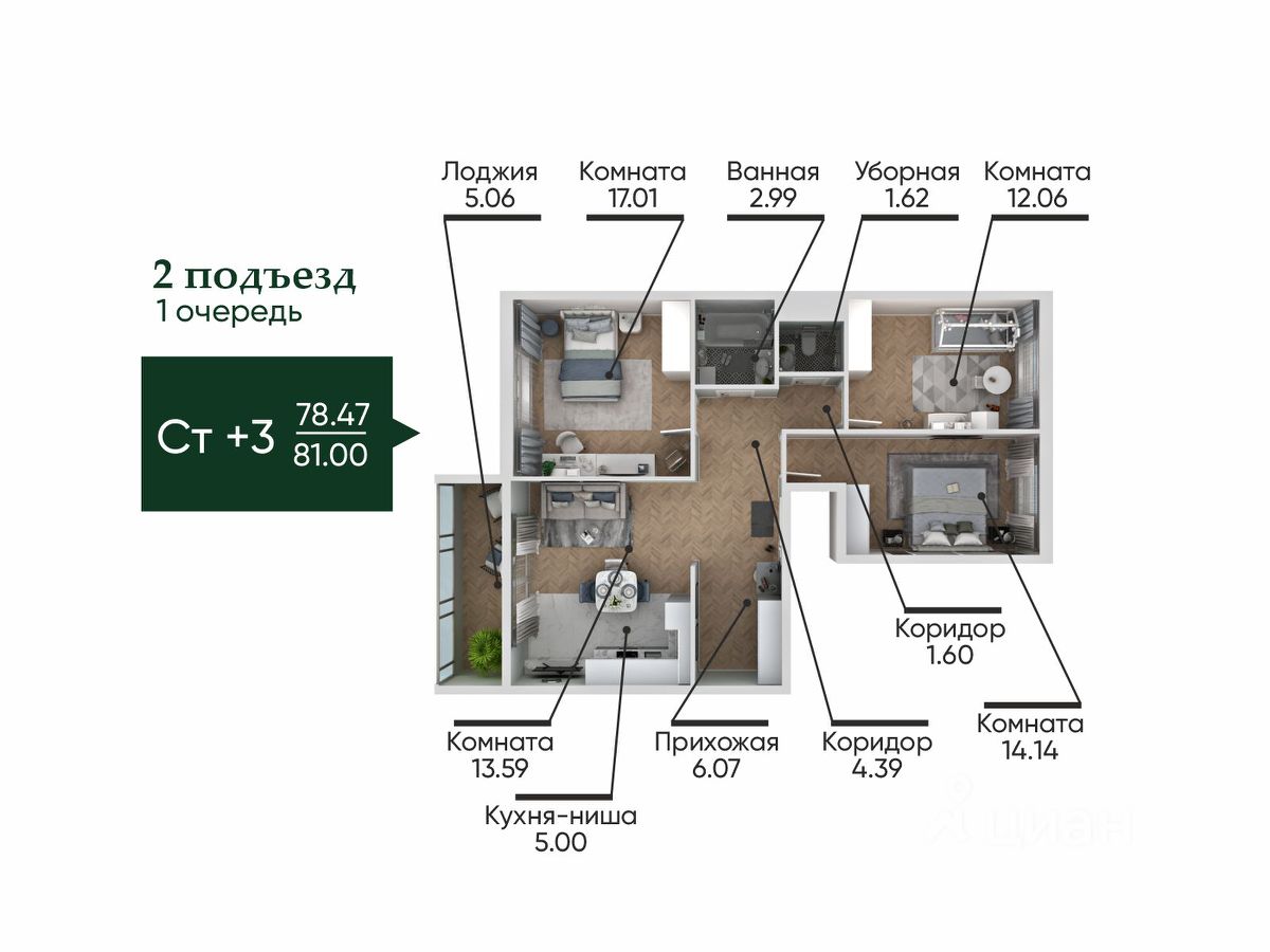 ЖК ''Ильменский'' открывает продажи! квартира 81, общей площадью 81.00 на 10 этаже.